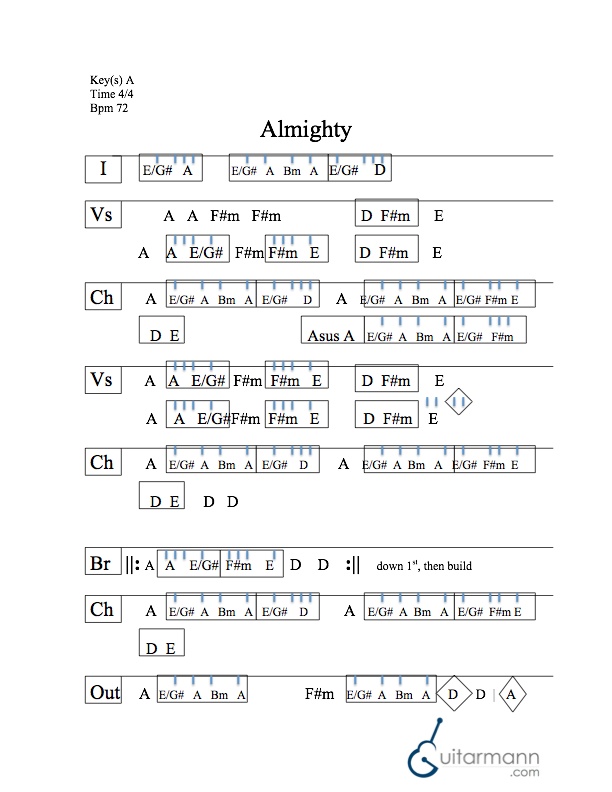 This Chris Tomlin worship song has some unique rhythmic chord changes. You can find it on the Love Ran Red album. Check it out in multiple keys.